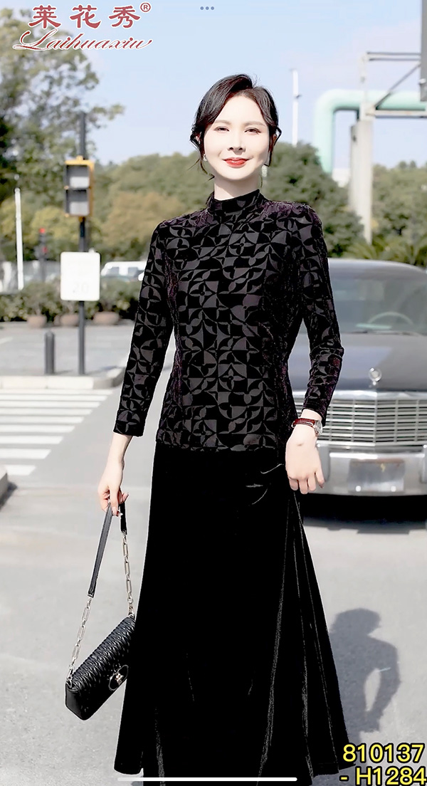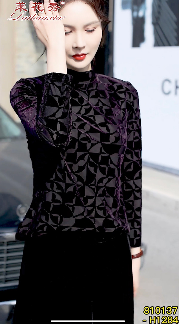 弹力丝绒上衣 莱花秀品牌设计 丝绒打底上衣