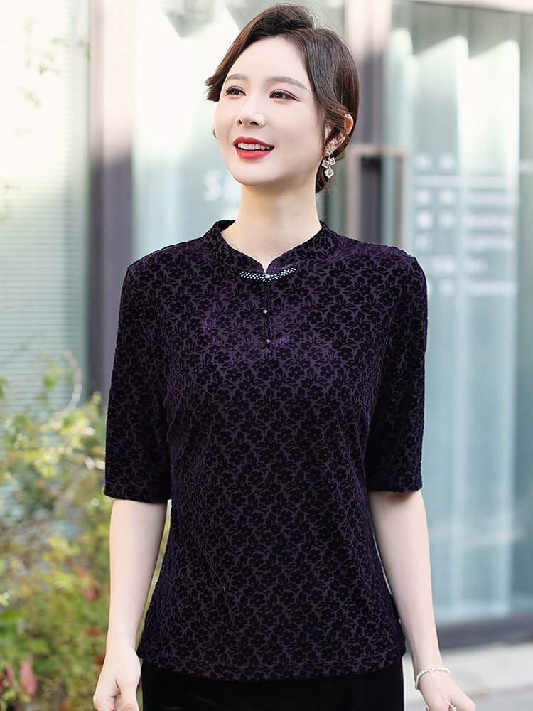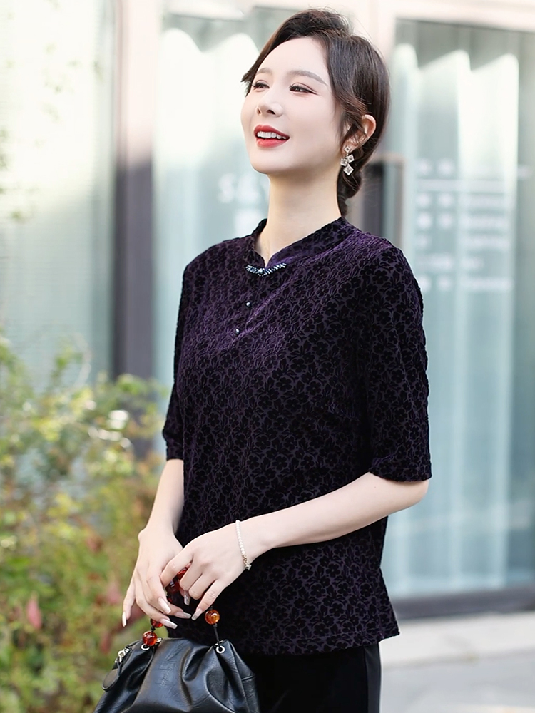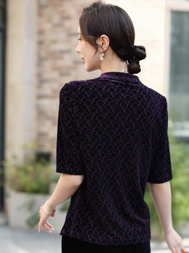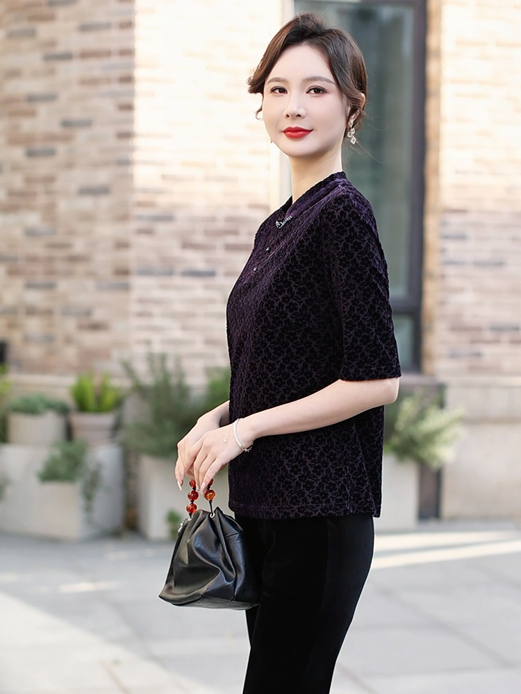 在时尚的长河中,有一种美,不会因潮流更迭而褪色,那便是优雅。这件深紫色中袖上衣,正是优雅的绝佳诠释。