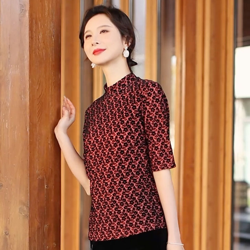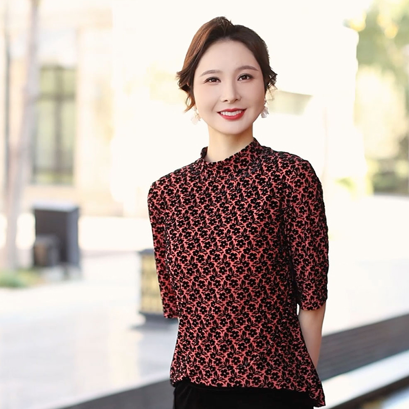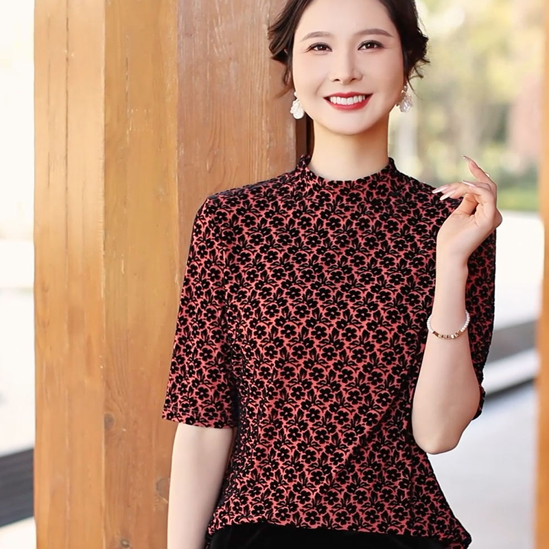 弹力丝绒上衣 莱花秀品牌设计 丝绒打底上衣