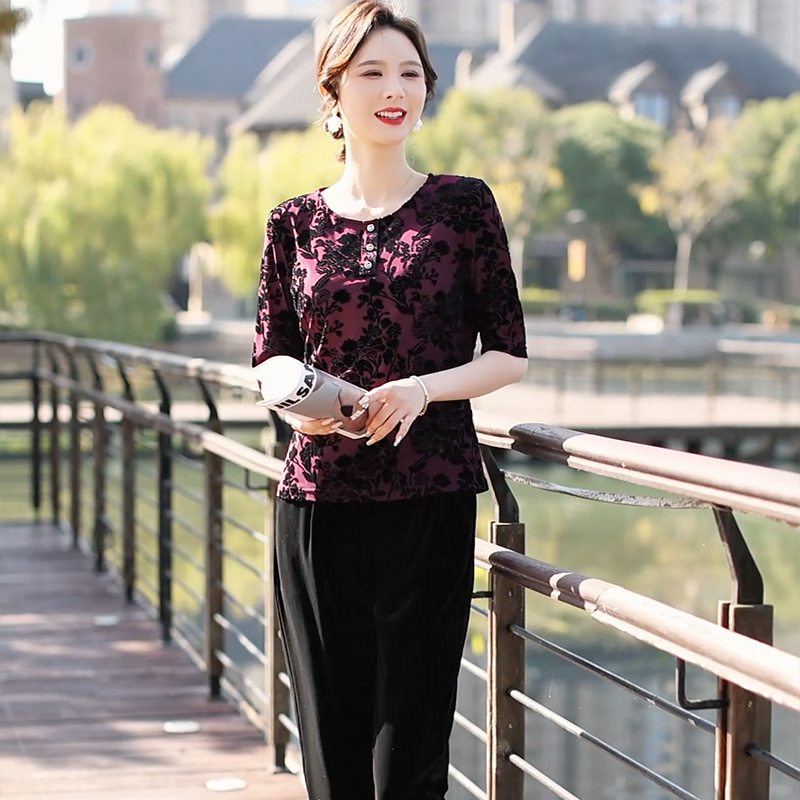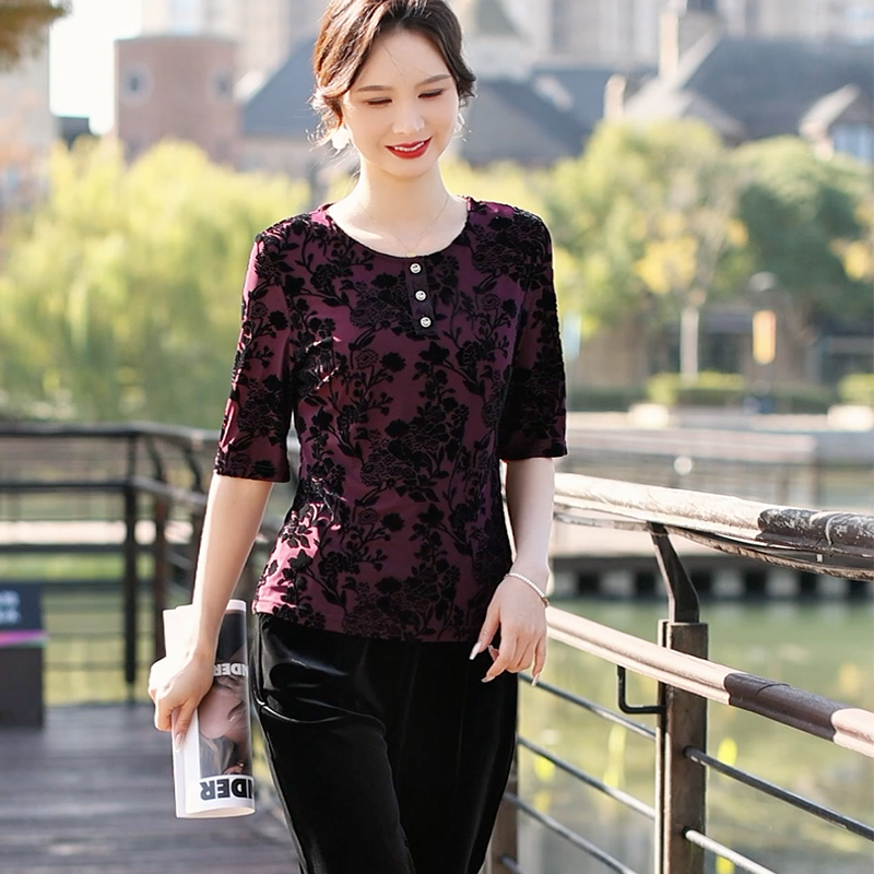 弹力丝绒上衣 莱花秀品牌设计 丝绒打底上衣