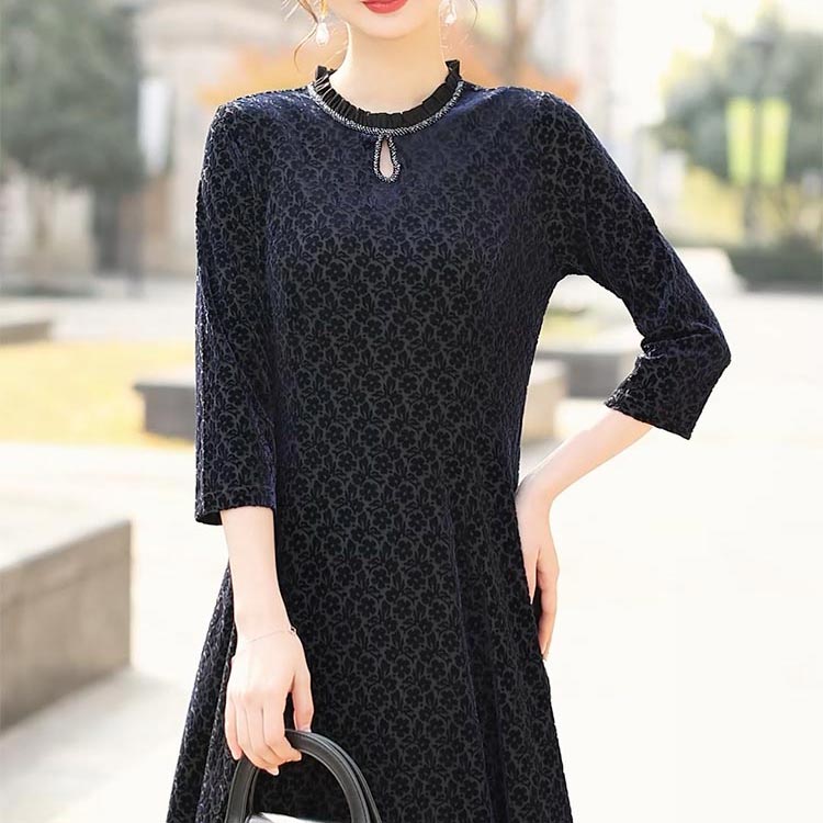 它的剪裁贴合人体曲线,张弛有度,既不紧绷束缚,也不松垮拖沓。流畅线条勾勒出曼妙身姿,尽显女性柔美。无论是漫步在阳光倾洒的街道,感受生活的惬意;还是出席重要社交场合,展现非凡魅力,这条连衣裙都能伴您从容应对,自信绽放独属于您的迷人光彩。