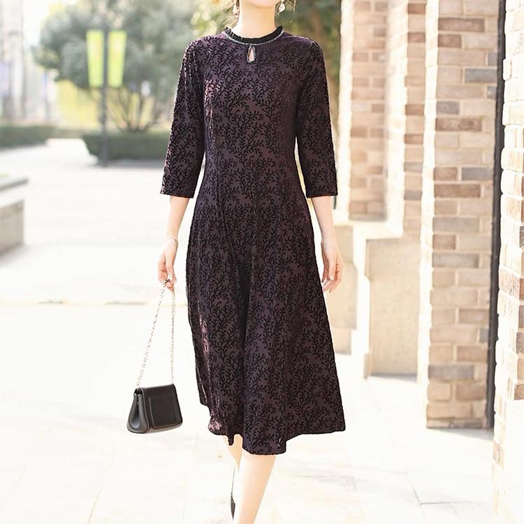 韩国进口丝绒 连衣裙 真丝丝绒 连衣裙