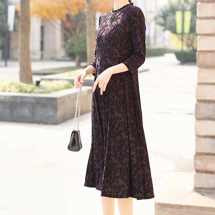 这款连衣裙以深沉黯黑为基调,精致印花巧妙点缀,似暗夜星辰般神秘迷人。低调中蕴含着独特品味,打破常规穿搭的平淡,轻松彰显个性态度。恰到好处的七分袖,贴合手臂线条,于细节处修饰身形,增添温婉气质。领口的精致设计,犹如点睛之笔,提升整体精致感,尽显优雅风范。