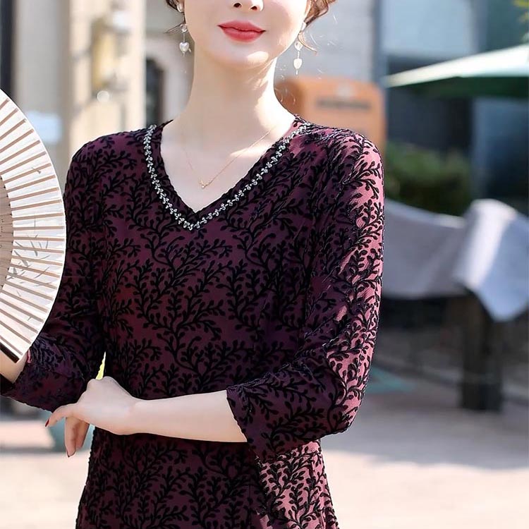 浓郁的酒红色作为底色,搭配上别致的黑色印花图案,复古韵味扑面而来。就像从旧时光里走出的优雅佳人,既有着岁月沉淀的韵味,又不失时尚感。