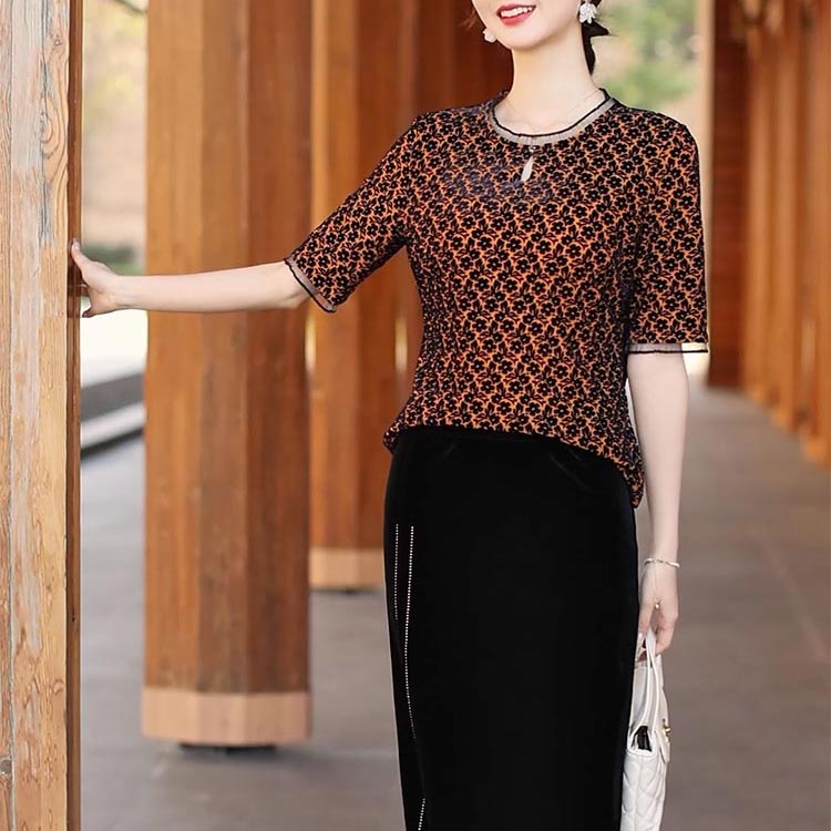 这件豹纹上衣,以大胆的花纹展现独特魅力,野性中透着精致。恰到好处的五分袖,修饰手臂线条,增添几分优雅。搭配黑色丝绒开叉裙,侧边拉链设计个性又时尚。手持精致手提包,无论是漫步街头还是出席聚会,都能轻松成为焦点,彰显您的时尚态度