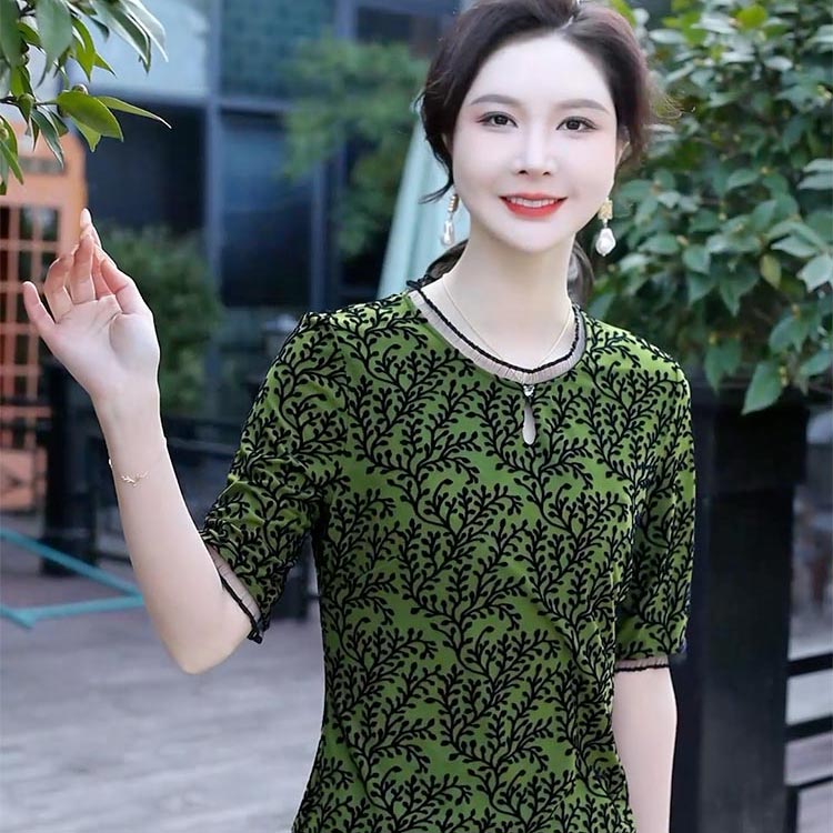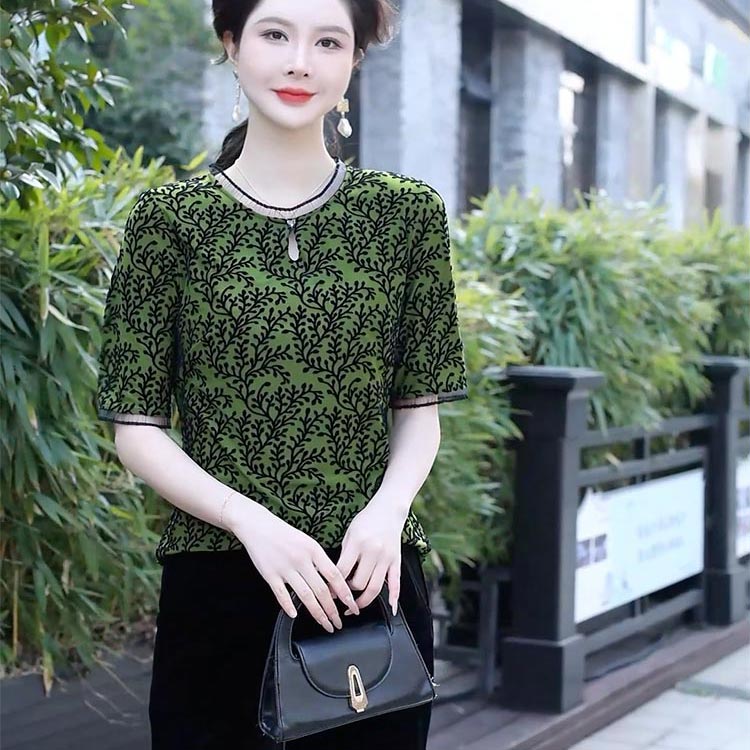 宝子们看过来!这件墨绿色短袖上衣,简直是气质开挂的存在!独特的植绒花纹,像精心雕琢的艺术品,细腻又有质感。墨绿色如同森林的精灵,显白又显气质 ,衬得整个人优雅又高级。