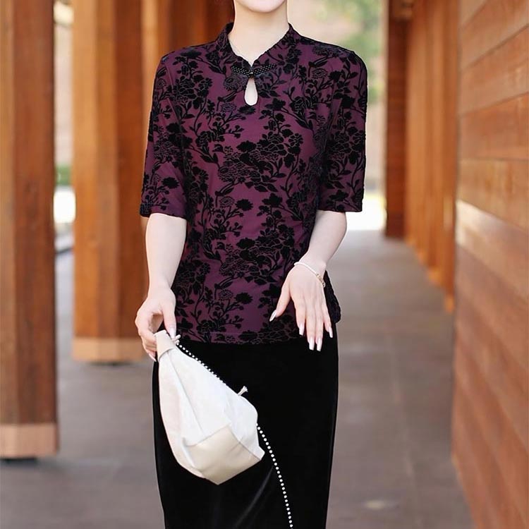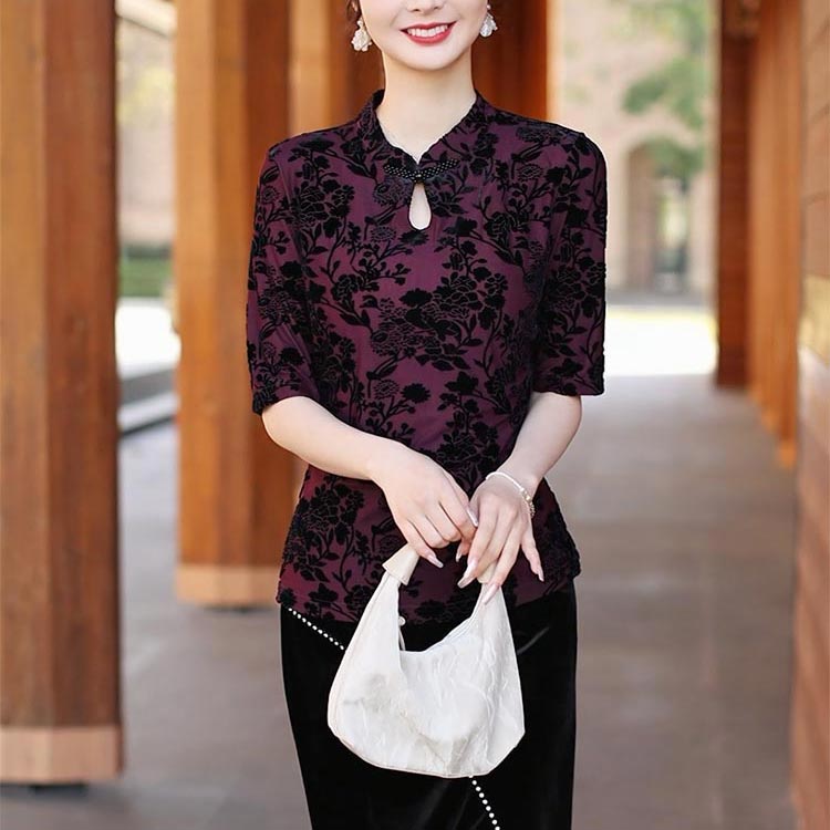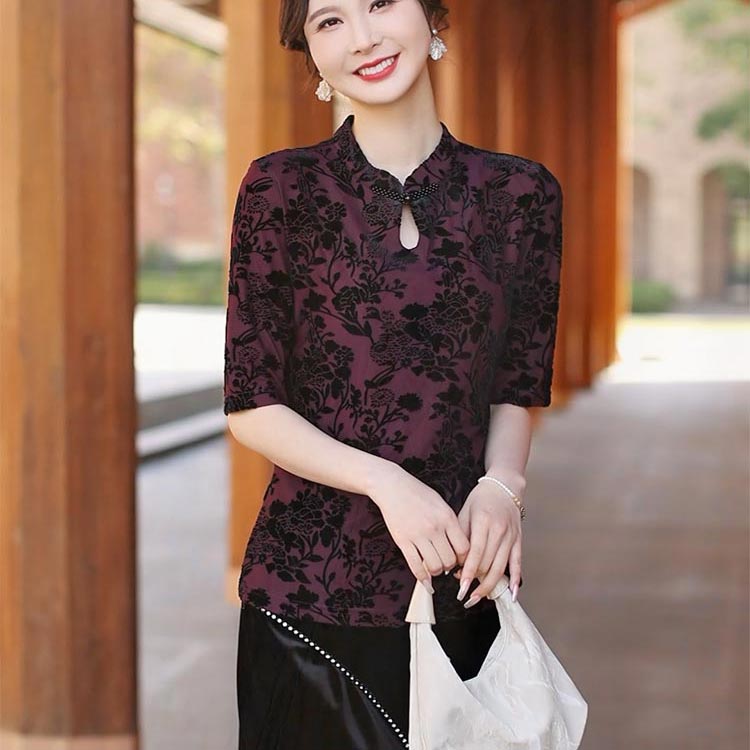 宝子们!被这件中式上衣狠狠拿捏了~浓郁的酒红色底,搭配精致的黑色花卉图案,复古又大气,中式氛围感拉满。