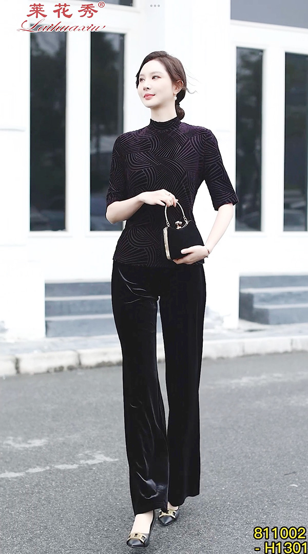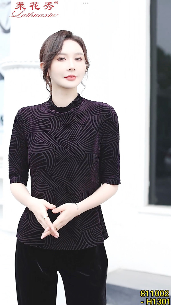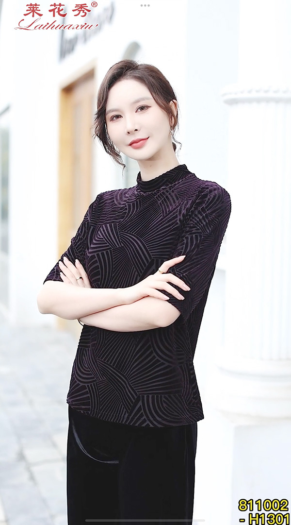 弹力丝绒上衣 莱花秀品牌设计 丝绒打底上衣