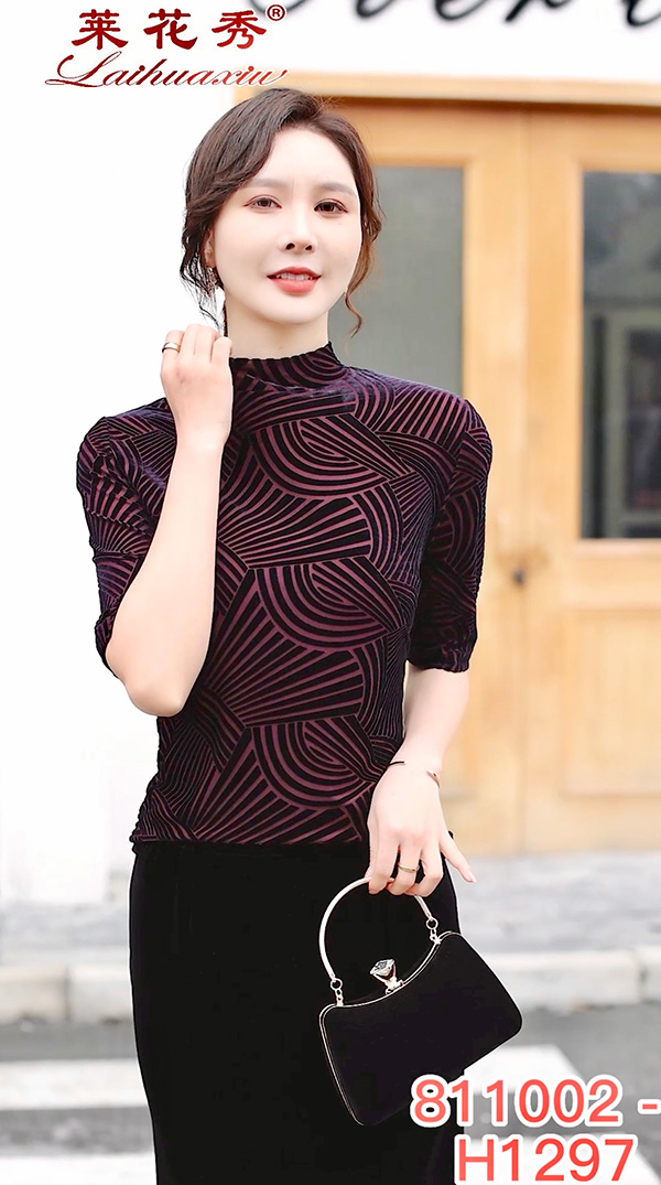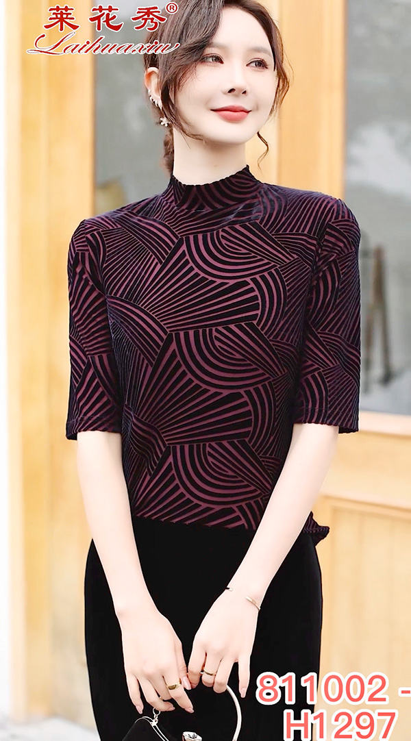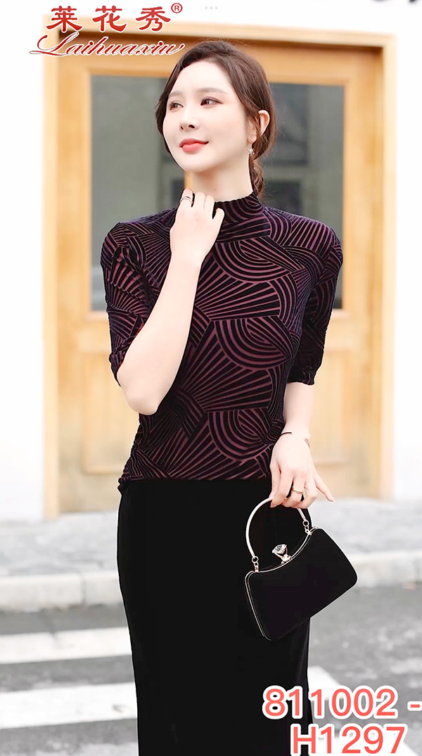 弹力丝绒上衣 莱花秀品牌设计 丝绒打底上衣