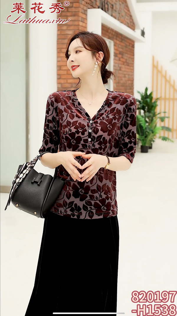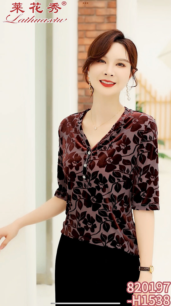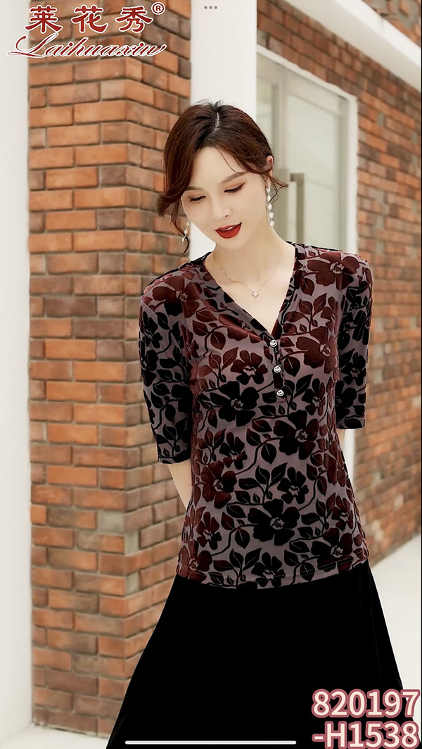 弹力丝绒上衣 莱花秀品牌设计 丝绒打底上衣