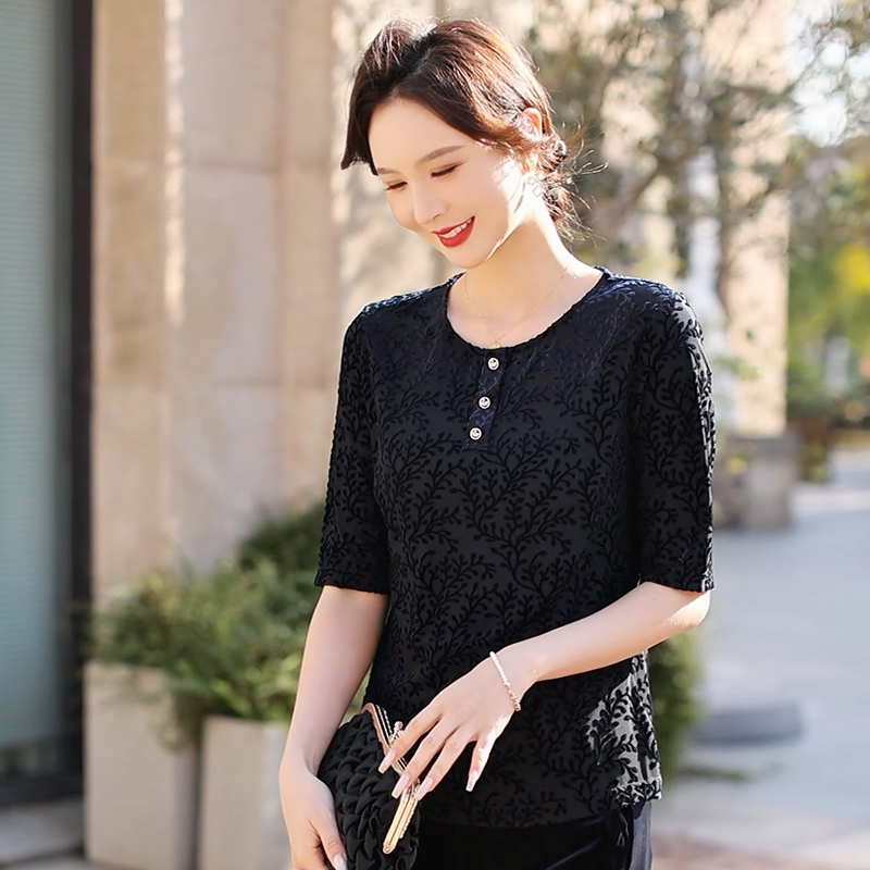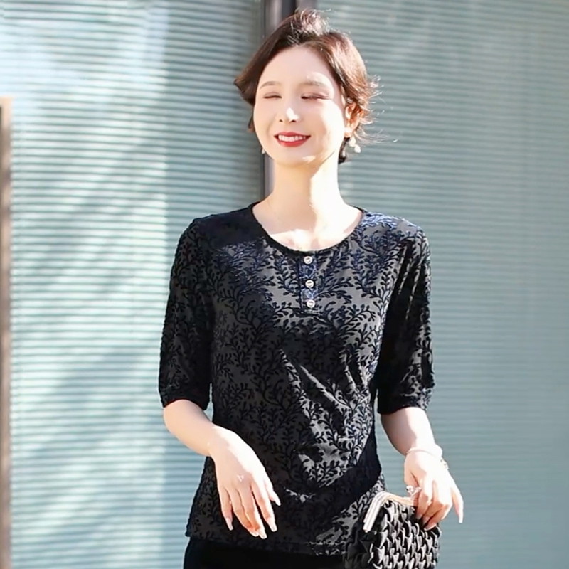 这件黑色花纹中袖上衣,细节感拉满!精致纽扣点缀领口,花纹设计低调又高级,藏肉剪裁超贴心。搭配简约下装,日常通勤、聚会社交都适配,轻松让妈妈穿出从容优雅范,气质直接拿捏~