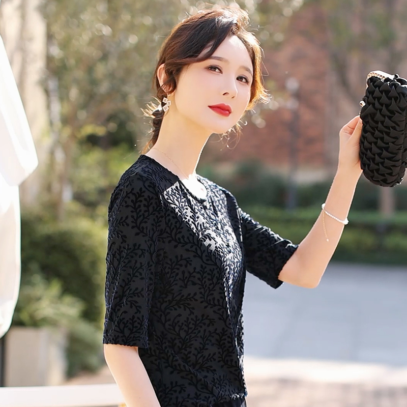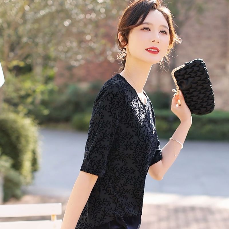 弹力丝绒上衣 莱花秀品牌设计 丝绒打底上衣
