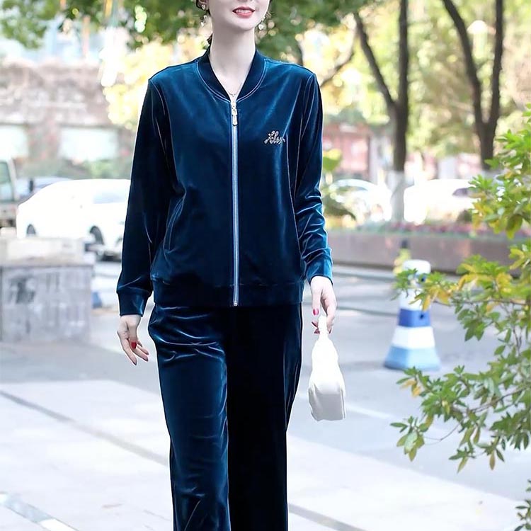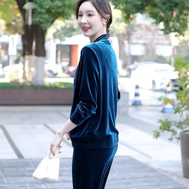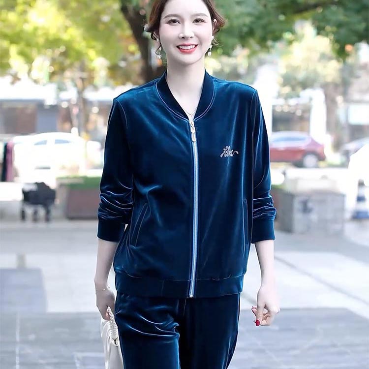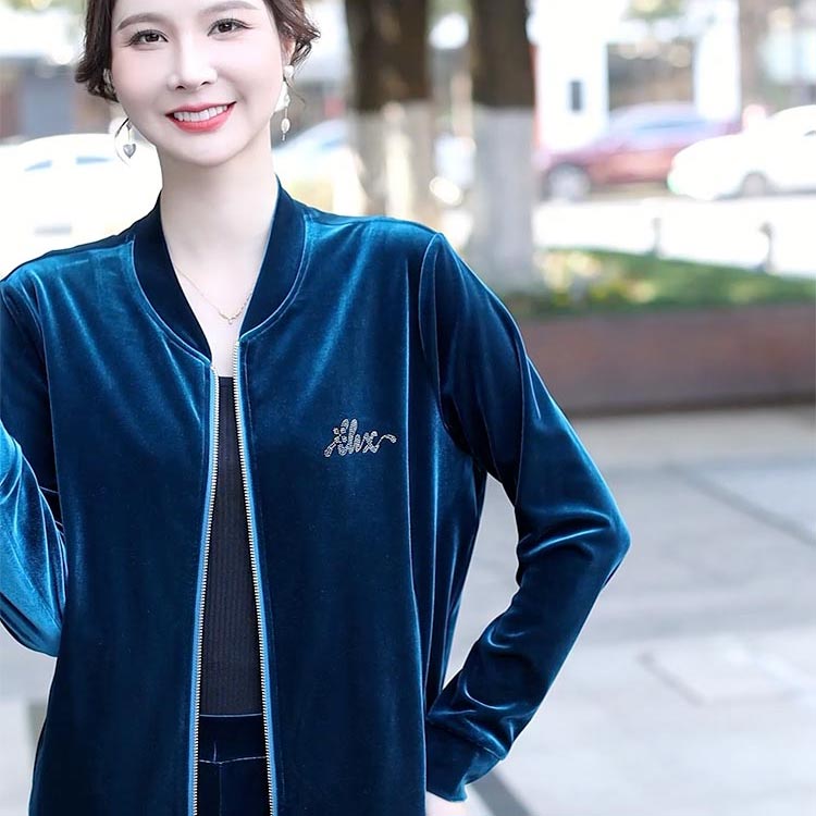 宝子们,这件深海蓝丝绒棒球外套太吸睛啦!浓郁的深海蓝,深邃又神秘,丝绒材质触感柔软,光泽迷人,高级感满满。